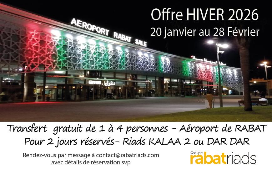 20 JANUARY TO 28 FEBRUARY 2026 FREE TRANSFER from Rabat Airport for all bookings of 2 days in a double room.